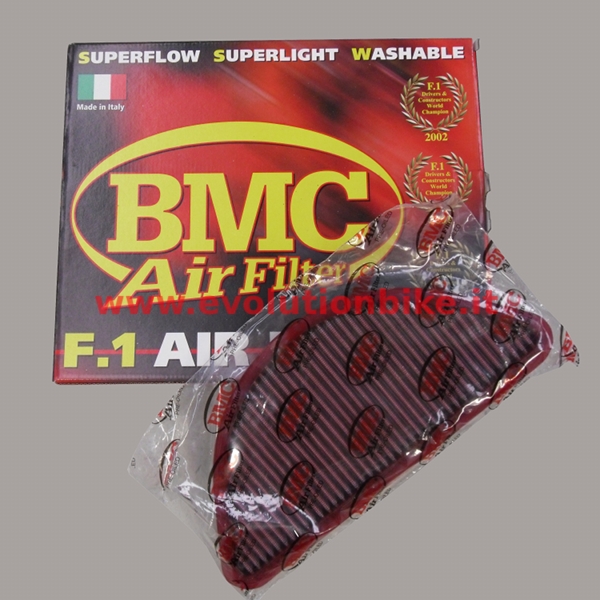 BMC air filters are designed and produced to ensure a higher air flow than original paper filters. BMC air filters, made in cotton, minimize the loss of air flow pressure passing through the air filter; this way ensures the best conditions for full exploitation of maximum power. Direct replacement for the standard air filter, easy to fit, instructions included. BMC air filters are washable and can be reused.