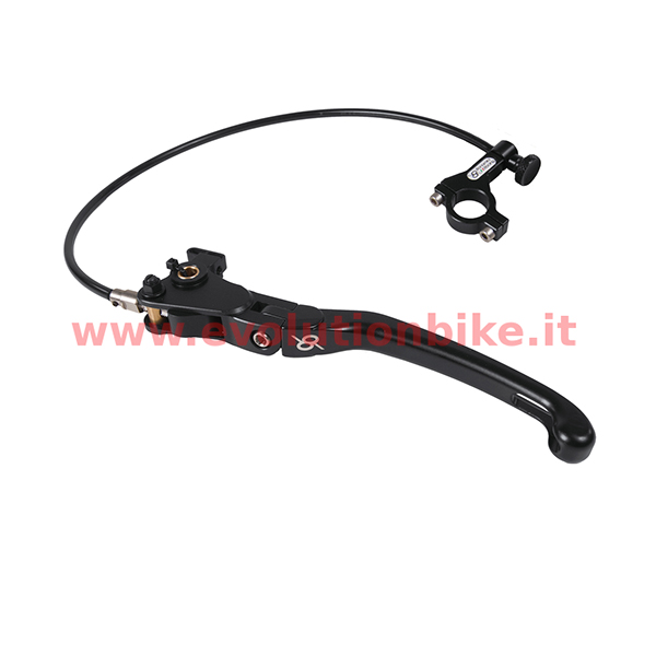 The connection is completely CNC machined from 7075 T6 alloy and the lever is made of cast magnesium. The remote adjuster is positioned on the left handlebar.