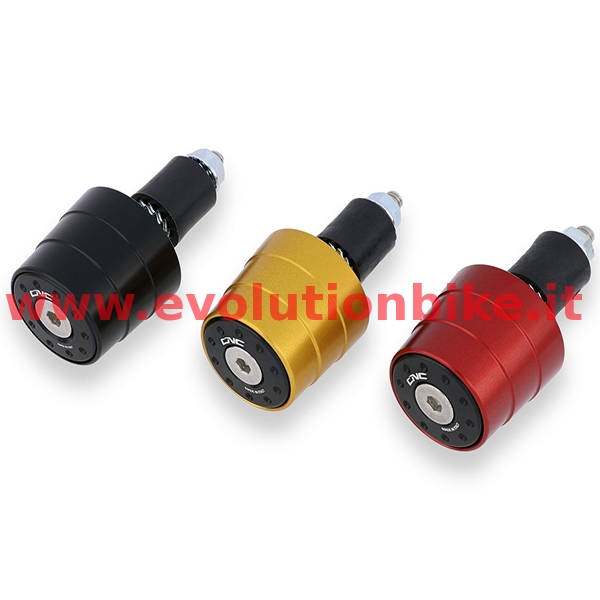 Handlebar weights CNC machined from light alloy billet and then given an anodized surface finish. The kit is composed of two weights and grant an attractive and race design, replacing the stock plastic or iron parts. The kit comes with all screws required for assembly on all handlebars. On motorcycles equipped with standard hand guards will be necessary to have them removed. Kit consists of 2 pieces. Available anodic treatment: Black, Red, Gold.