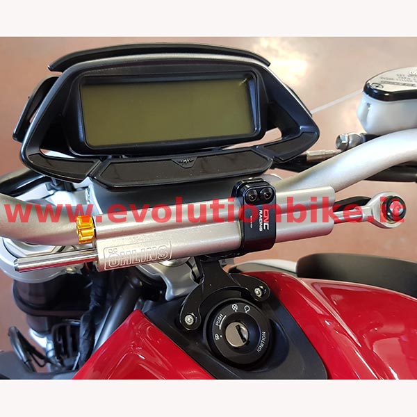 Steering damper kit for MV Agusta Brutale 3cylinders machined from solid in light alloy with following surface anodizing.