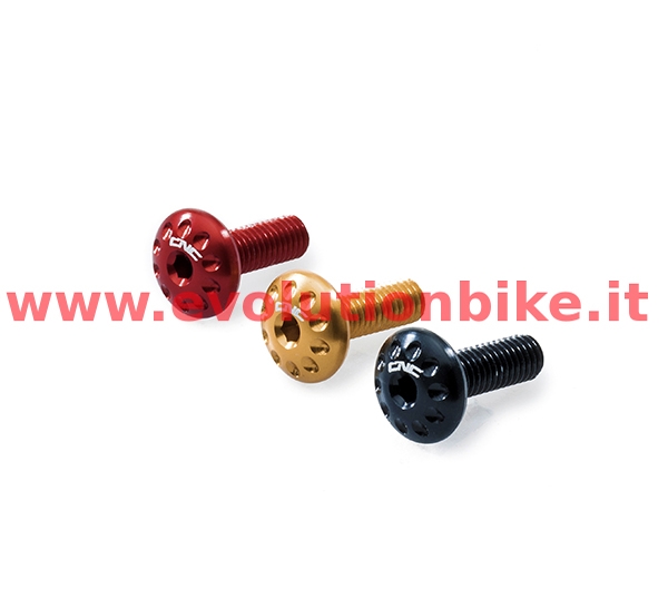 Front mudguard screw kit made from a light alloy with subsequent surface anodized. The screws replace the original ones made in iron often rusted or oxidized. Kit consists of 8 screws. Available in different colors as: black, gold, red.