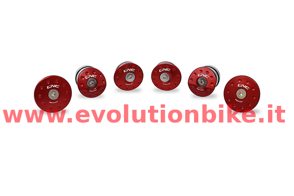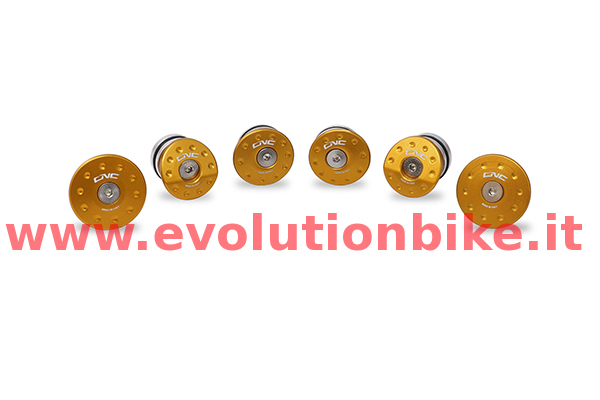 Frame caps kit billet Ergal 7075 with subsequent surface anodized. Perfectly applicable to the original frame can cover unsightly holes, apply quickly without damaging the frame. Available in different anodic treatments: red, gold, black.
