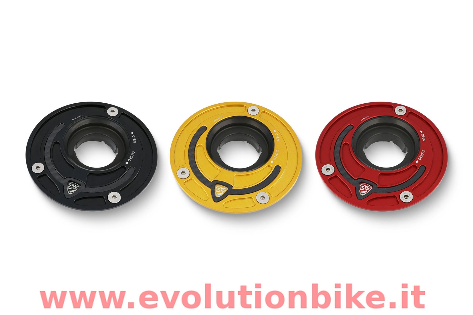 Fuel tank cap CNC machined from light alloy billet and then given a colored anodized surface finish. Notable for its exclusive race-style design, Ergal and carbon weave together to create a unique and top quality product. The inner shell is made of Ergal with hard anodizing which guarantees the surface finish without scratches even after continuous contact with the gun when refueling. Notice: Fuel tank plugs are sold separately to give the opportunity to have the maximum functional and color customization