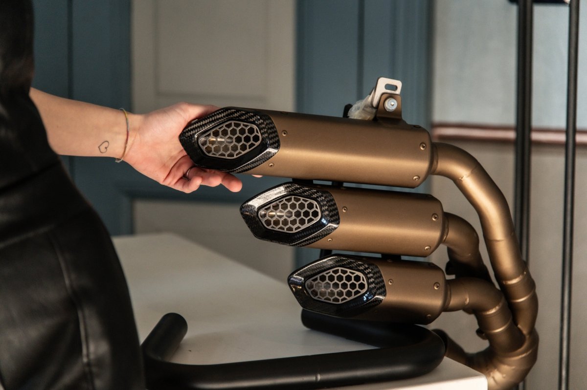 The Tre Canne is designed to replace the bulky factory unit with a more streamlined, hand-finished component. The manufacturing process focuses on optimizing gas flow while maintaining a sophisticated visual profile.