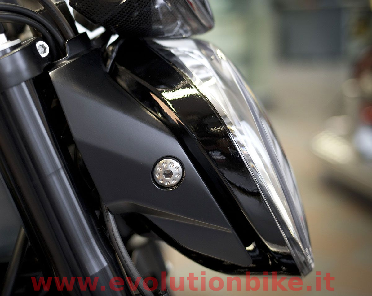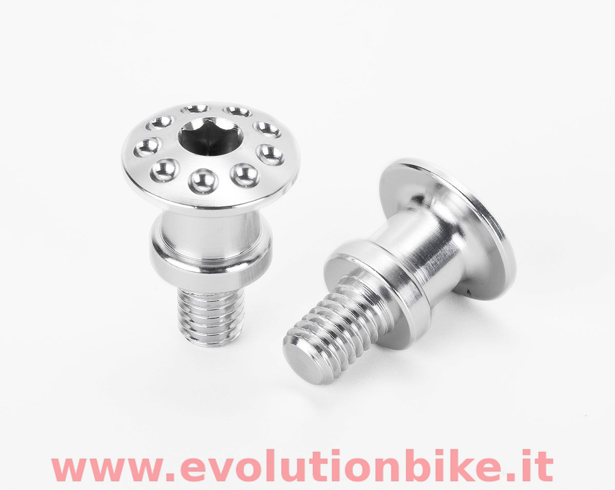 Aluminium headlight screws which substitute the OEM part.
