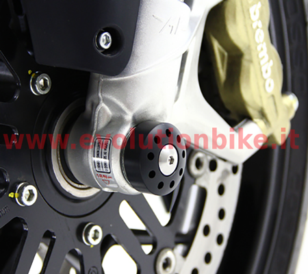 The special sliders front wheel axle are derived, by careful machining of the CNC machine, from blocks of Delrin, a plastic material with excellent dimensional stability, high mechanical strength and hardness. The sliders have a rounded shape (dome type); in the wheel side totally encompasses the bulk nut with its clip, while in the side crown nut is protected but remains visible. This particular conformation it confers, in case of accidental fall or sliding, a protective function. Both parts are held in place by a pin / tie aluminium centre and two titanium screws, custom-made exclusive Motocorse. The pin / tie aluminium centre is machined from billet and with anodisation of the surface to prevent rust from general use in all weather conditions. A great must have investment for any custom motorcycle enthusiast. The anodisation is a electrolytic passivation process used to increase the thickness of the natural oxide layer on the surface of metal components of this kit. Motocorse use the most advance machines to ensure every axle slider meet the high standards of your pride and joy.