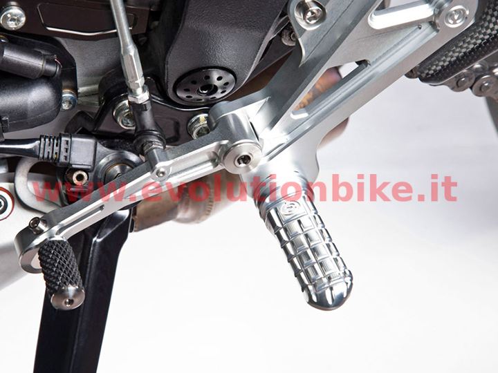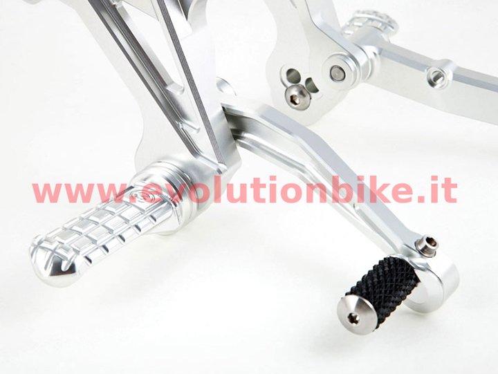 Motocorse billet riding adjustable footpegs are made of aluminium alloy (Anticorodal 6082) and constructed through the use of CNC machines.