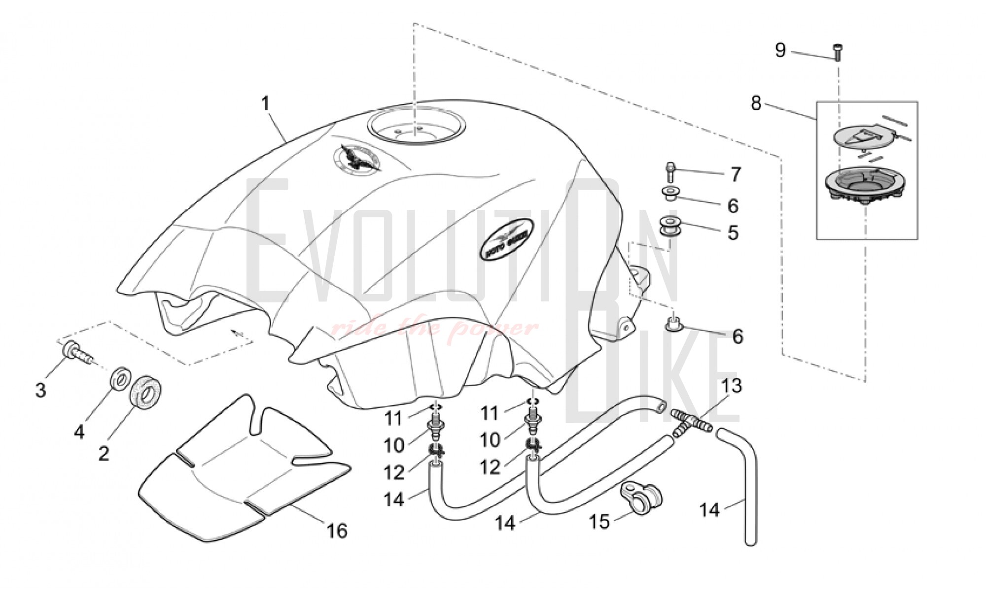 1 GU05100232 FUEL TANK GUZZI BLACK Available on backorder