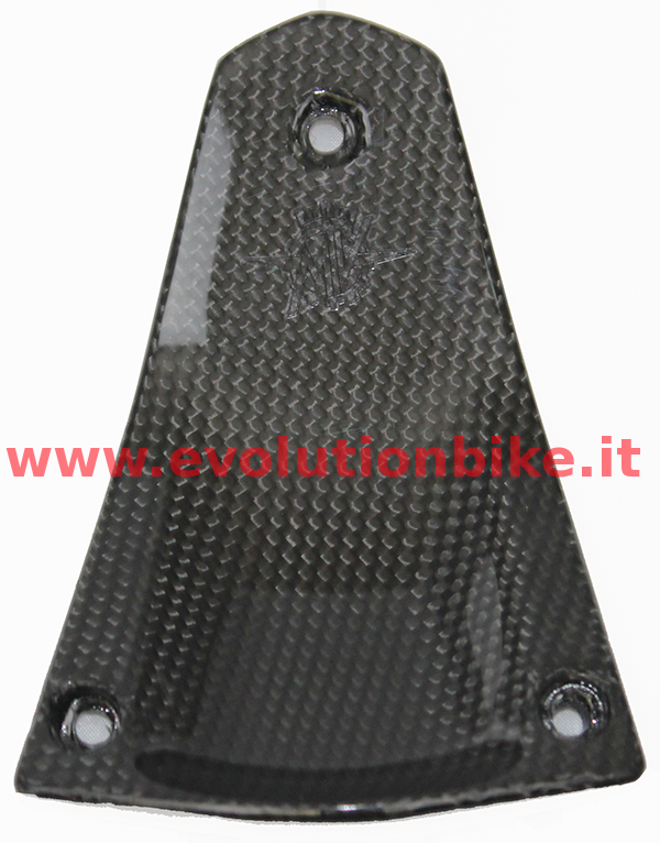 Lower underseat in carbon fiber. Produced in autoclave, a process that applies different thermal cycles so that temperature and pressure are distributed evenly, ensuring the production. Personalized with MV Agusta logo.