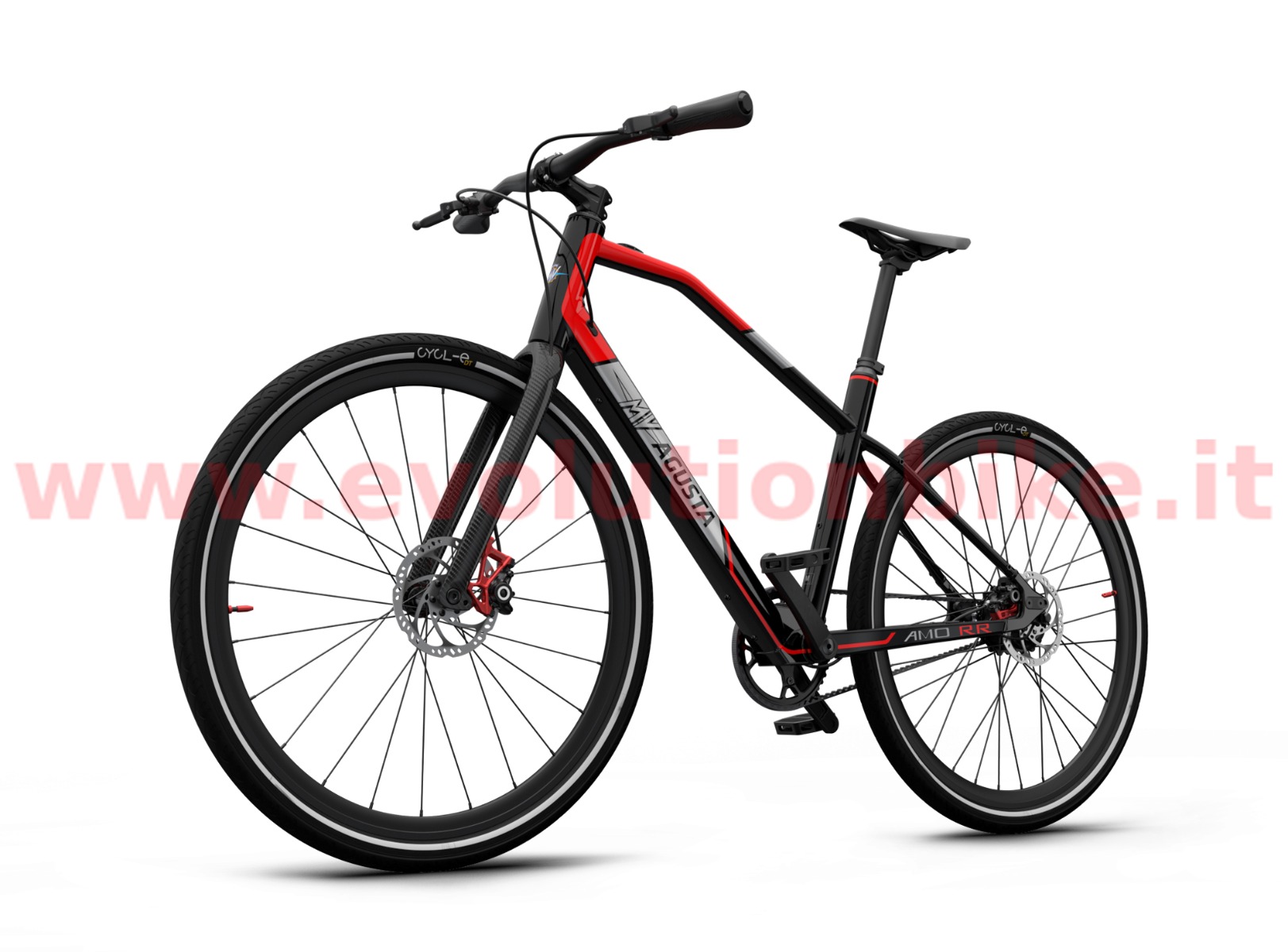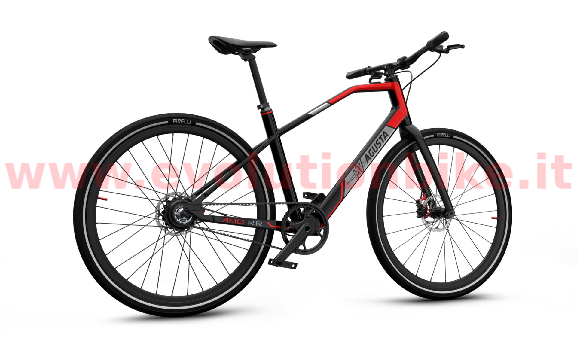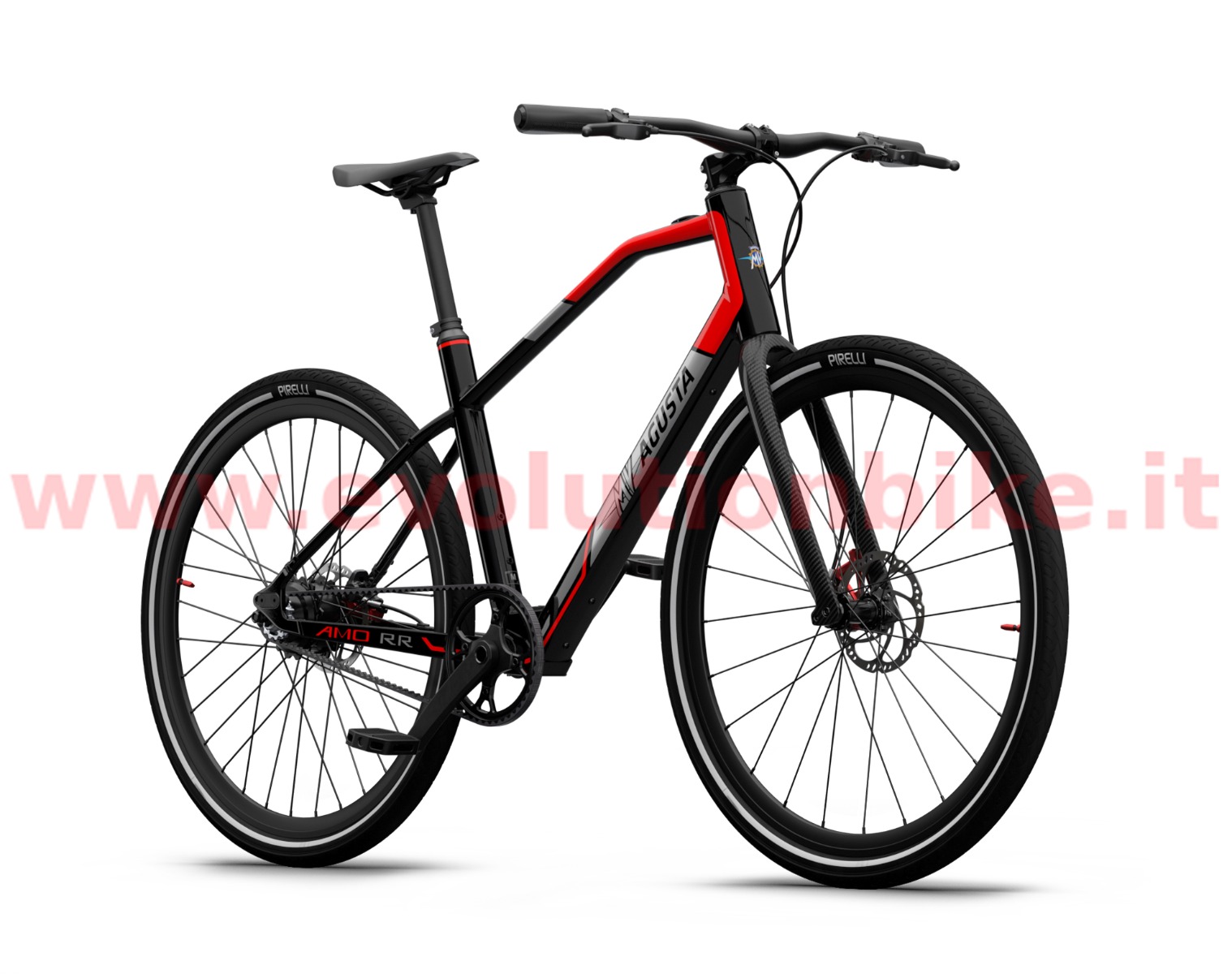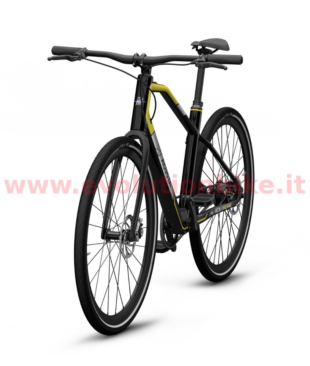 Motor: Mahle X35 M1+ is an incredibly powerful motor considering how compact and lightweight it is. At just 3.5kg (including the battery, wiring and the engine itself) it is able to generate up to 40 Nm of torque in the wheel axis. MV AGUSTA AMO RR features high-quality aluminum wheels while AMO RC is equipped with the exclusive carbon wheels adding to an already extra lightweight build. Tires are the premium Pirelli Cycl-e DT SPORT 700X42C that offer great rolling efficiency, reliability and outstanding grip to ensure safe and swift urban cycling. Both RR and RC wheels are built with a reflective band, which guarantees greater visibility when pedaling in city traffic at any time of day and night. 700 x 42C. Brakes: MV Agusta engineers know that city commuting demands quick, controlled braking. AMO Series boasts the Magura MT4 brake system, featuring a brake master manufactured from lightweight propriety Carbotecture® composite that contributes to best-in-class performance and an overall lightweight build of RR and RC models. The rigid disc tube cable and one-piece caliper configuration translates to responsive stops with outstanding stability and modulation.