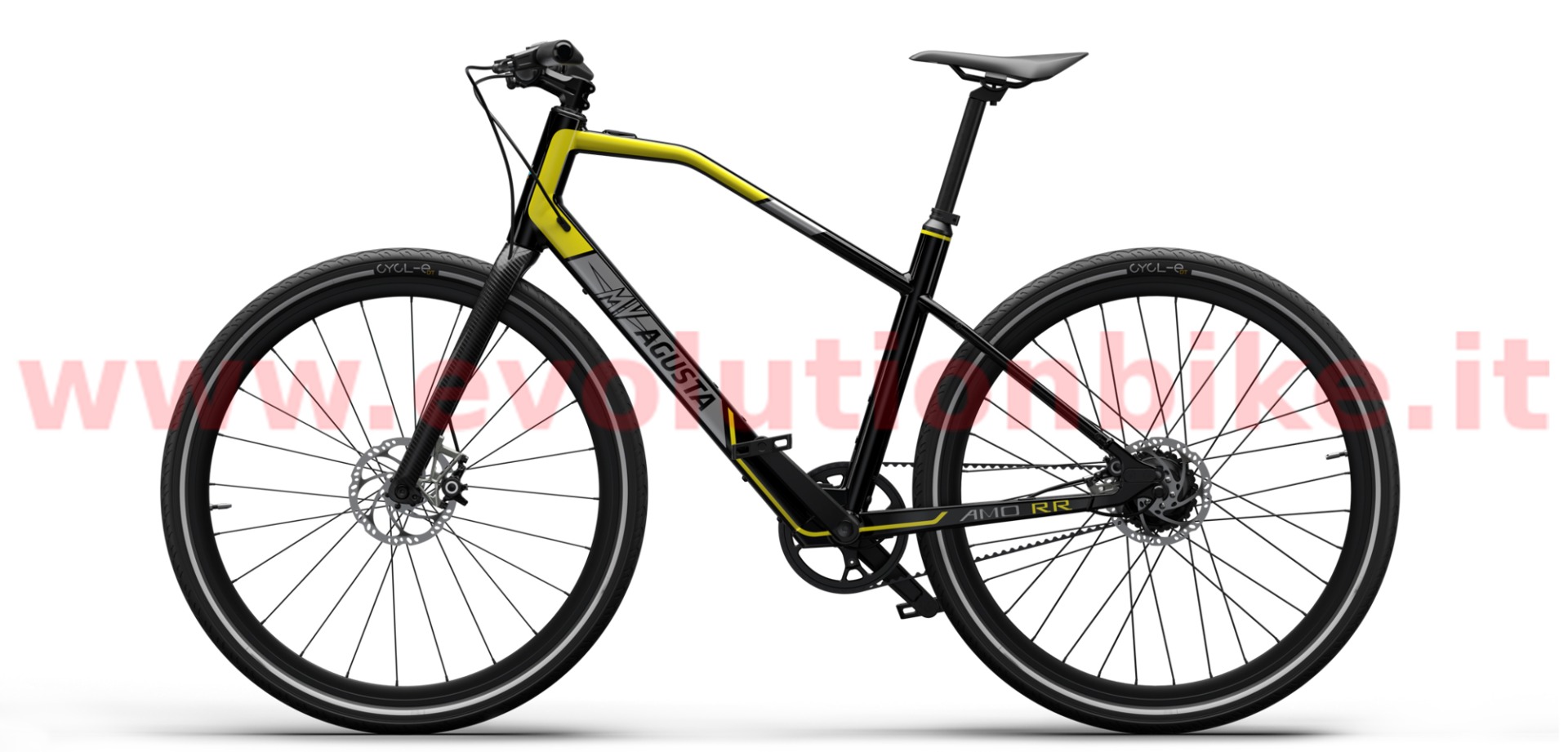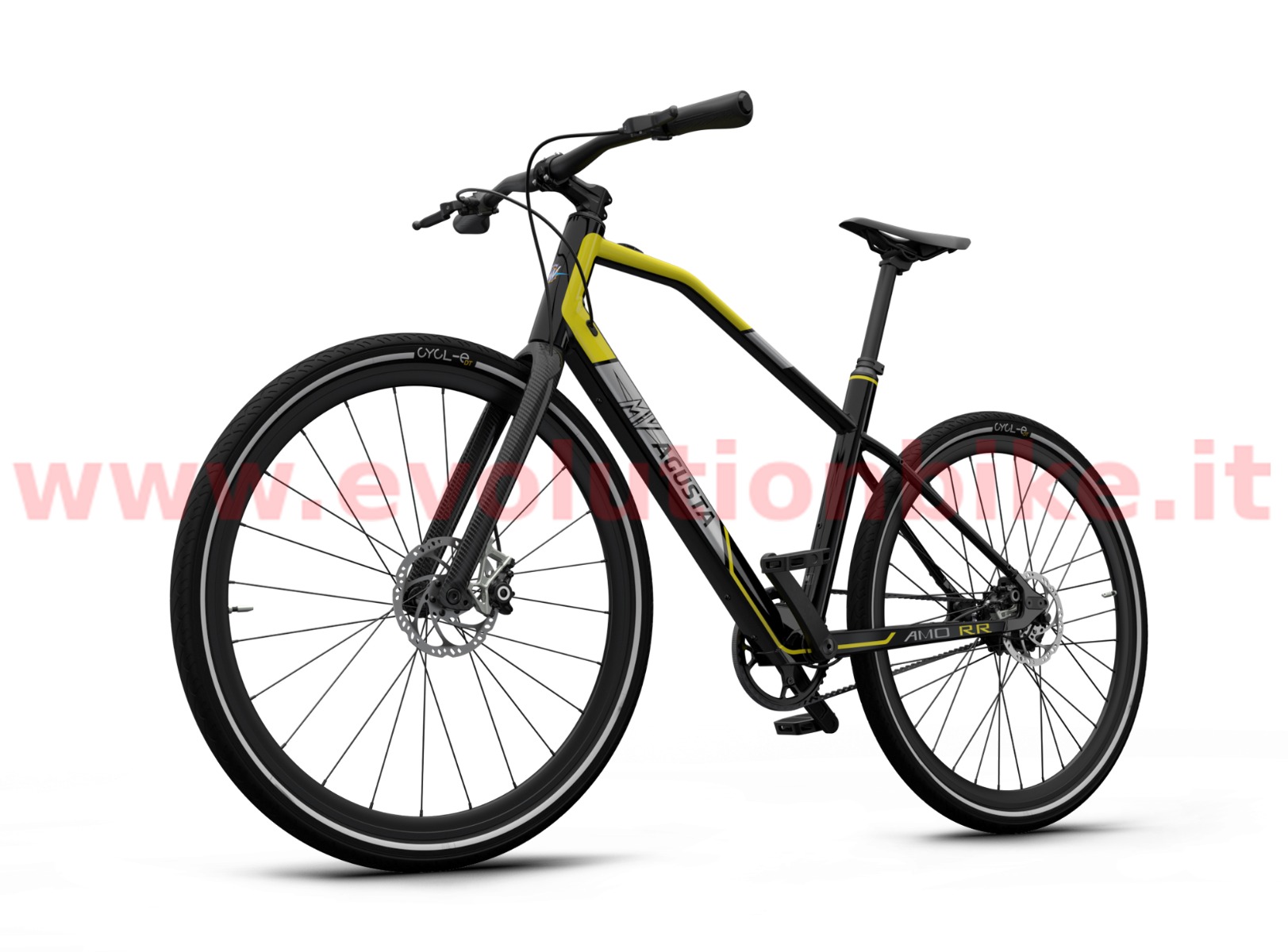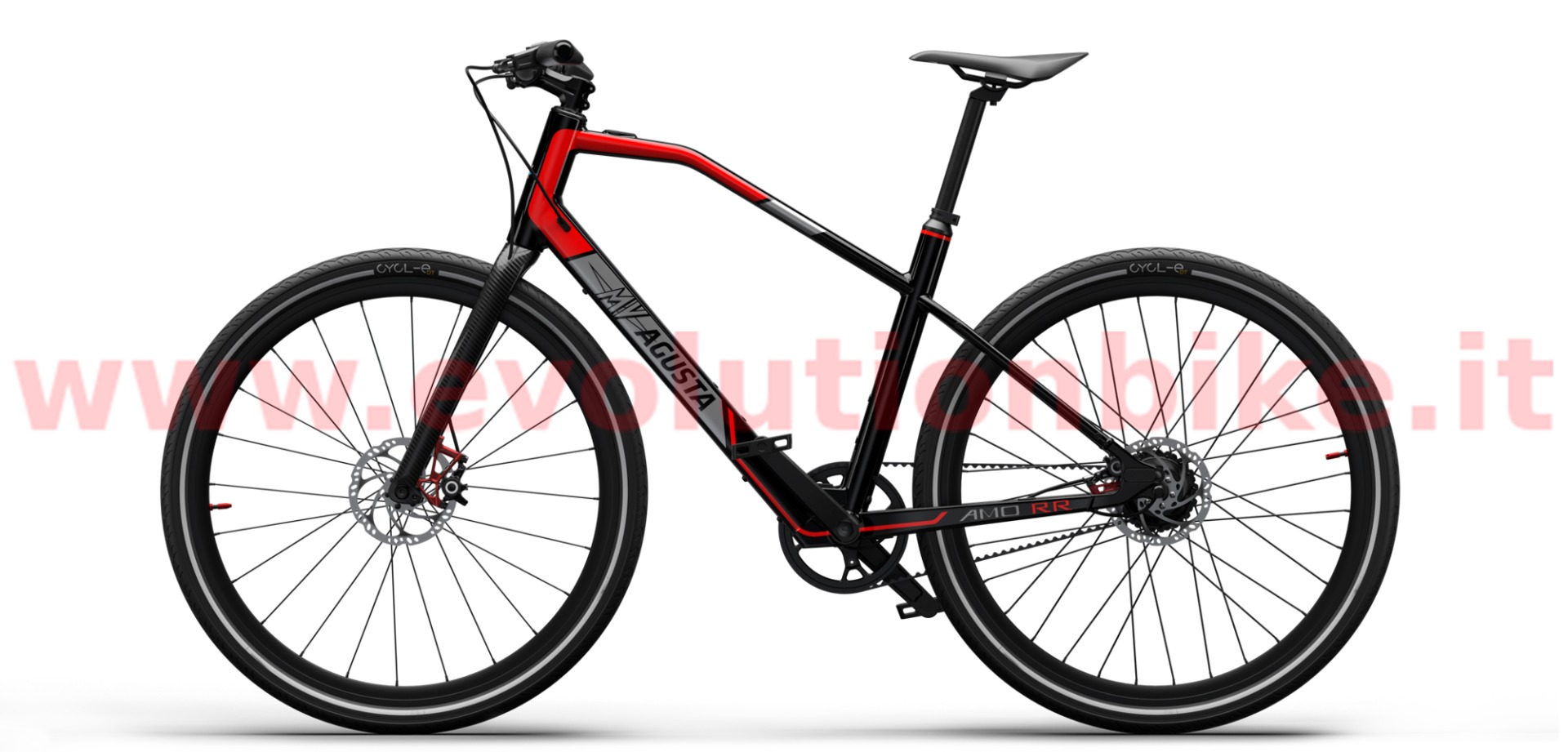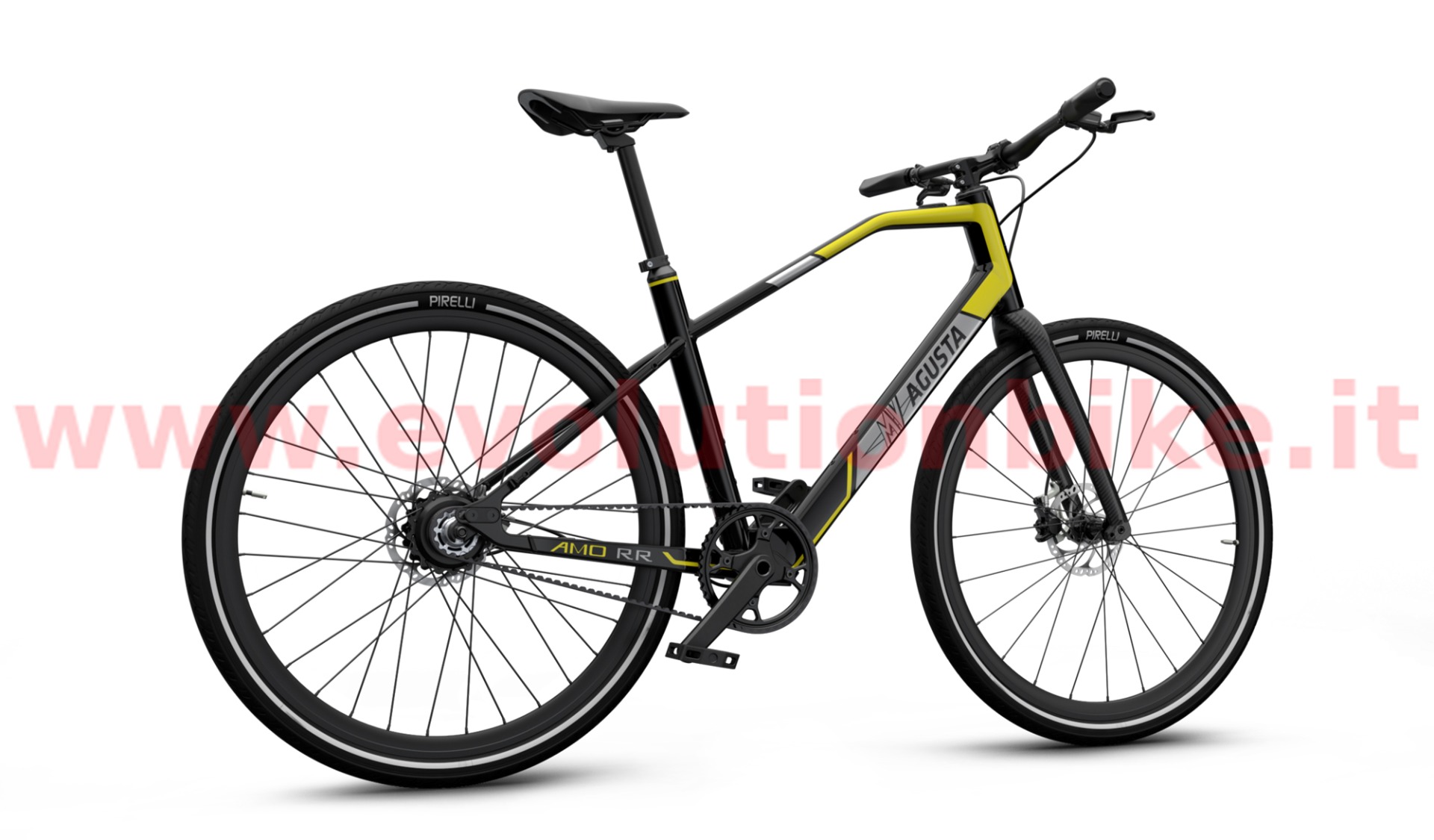 Motor: Mahle X35 M1+ is an incredibly powerful motor considering how compact and lightweight it is. At just 3.5kg (including the battery, wiring and the engine itself) it is able to generate up to 40 Nm of torque in the wheel axis. MV AGUSTA AMO RR features high-quality aluminum wheels while AMO RC is equipped with the exclusive carbon wheels adding to an already extra lightweight build. Tires are the premium Pirelli Cycl-e DT SPORT 700X42C that offer great rolling efficiency, reliability and outstanding grip to ensure safe and swift urban cycling. Both RR and RC wheels are built with a reflective band, which guarantees greater visibility when pedaling in city traffic at any time of day and night. 700 x 42C. Brakes: MV Agusta engineers know that city commuting demands quick, controlled braking. AMO Series boasts the Magura MT4 brake system, featuring a brake master manufactured from lightweight propriety Carbotecture® composite that contributes to best-in-class performance and an overall lightweight build of RR and RC models. The rigid disc tube cable and one-piece caliper configuration translates to responsive stops with outstanding stability and modulation.