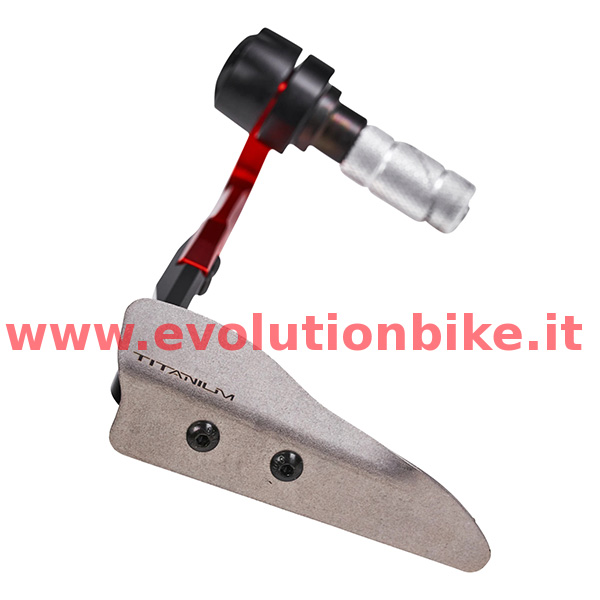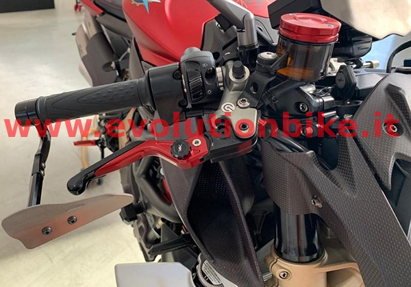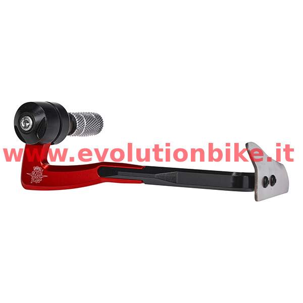 Red brake lever protection. Main body made of machined billet ergal. Personalized with titanium deflector and Mv Agusta logo. Red anodizing.