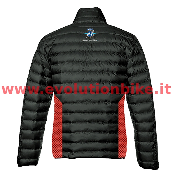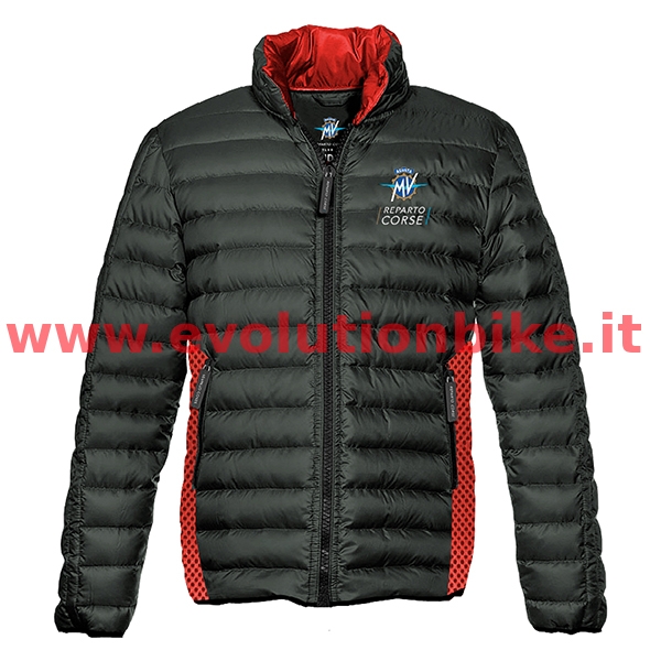 Color: red/dark bluegrey. Reparto Corse Padded Jacket BlueGrey/Red made from 100% Polyester. Red rubber mesh side inserts. MV Agusta and Reparto Corse logo on the chest and back. Available size: S, L, XXXL.