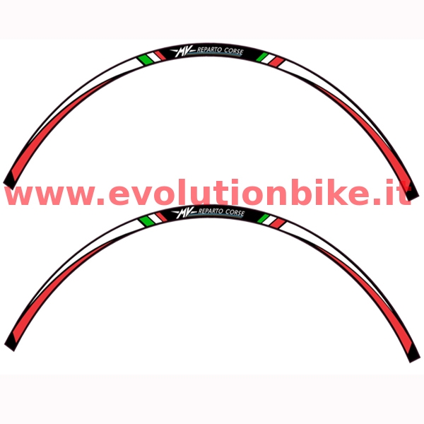 Adhesive kit for 17-inch wheel. Personalized with "Mv Reparto Corse" logo. Consisting of 4 strips to decorate a wheel, front or rear.