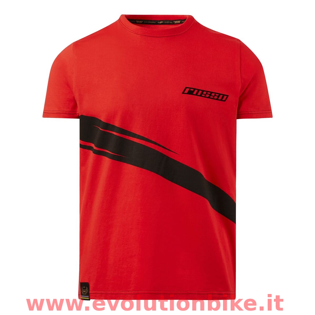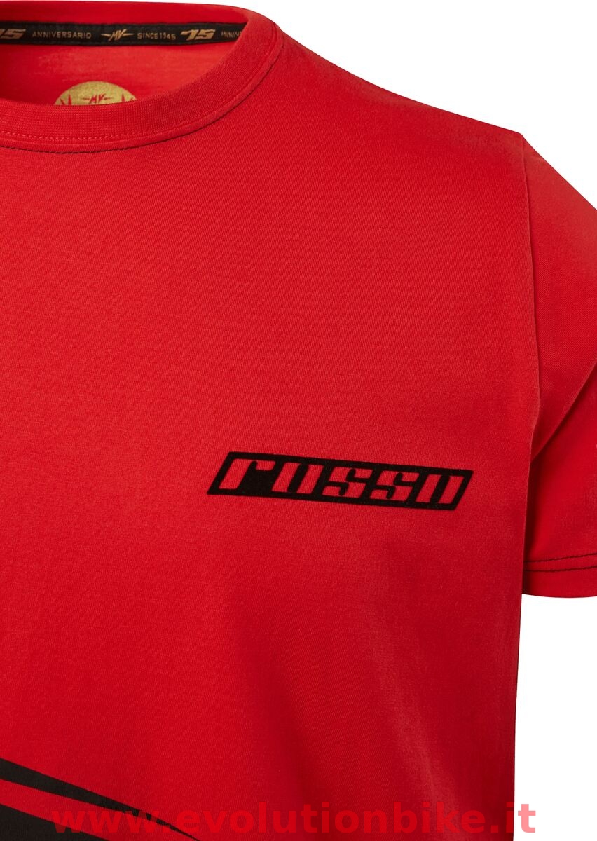 Dedicated to the MV Agusta Rosso model range, the special T-Shirt features elegant colours inspired by the Rosso range. The front features the Rosso logo on the chest and a slash across the T-Shirt. The T-Shirt is detailed with colour contrast stitching and a traditional MV logo printed on the back.