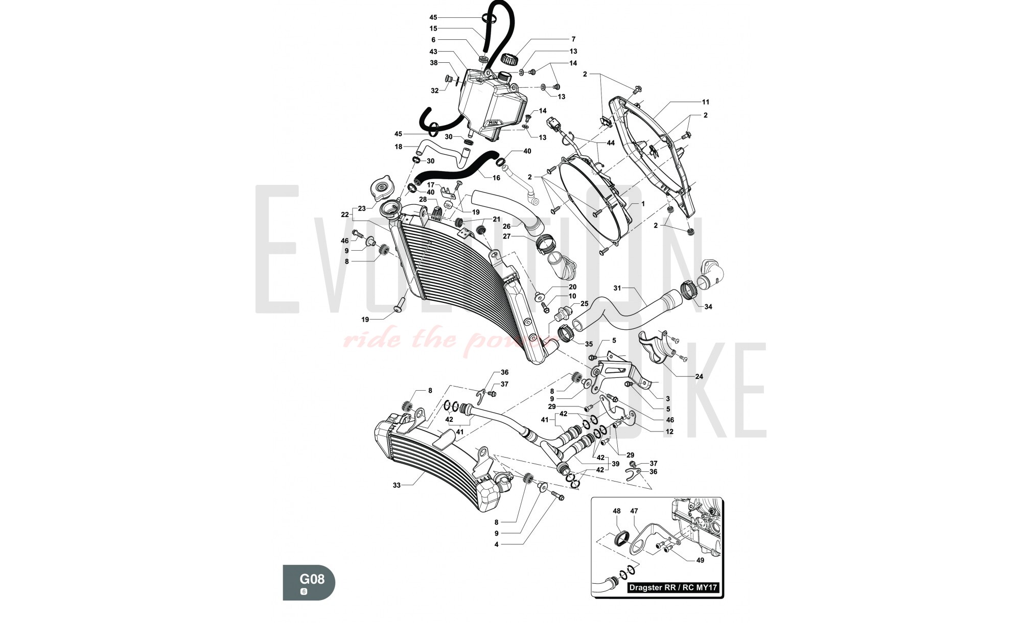 22 SPMV8000C3988 RADIATOR, WATER MY17 DRAGSTER RR/DRA Available on backorder