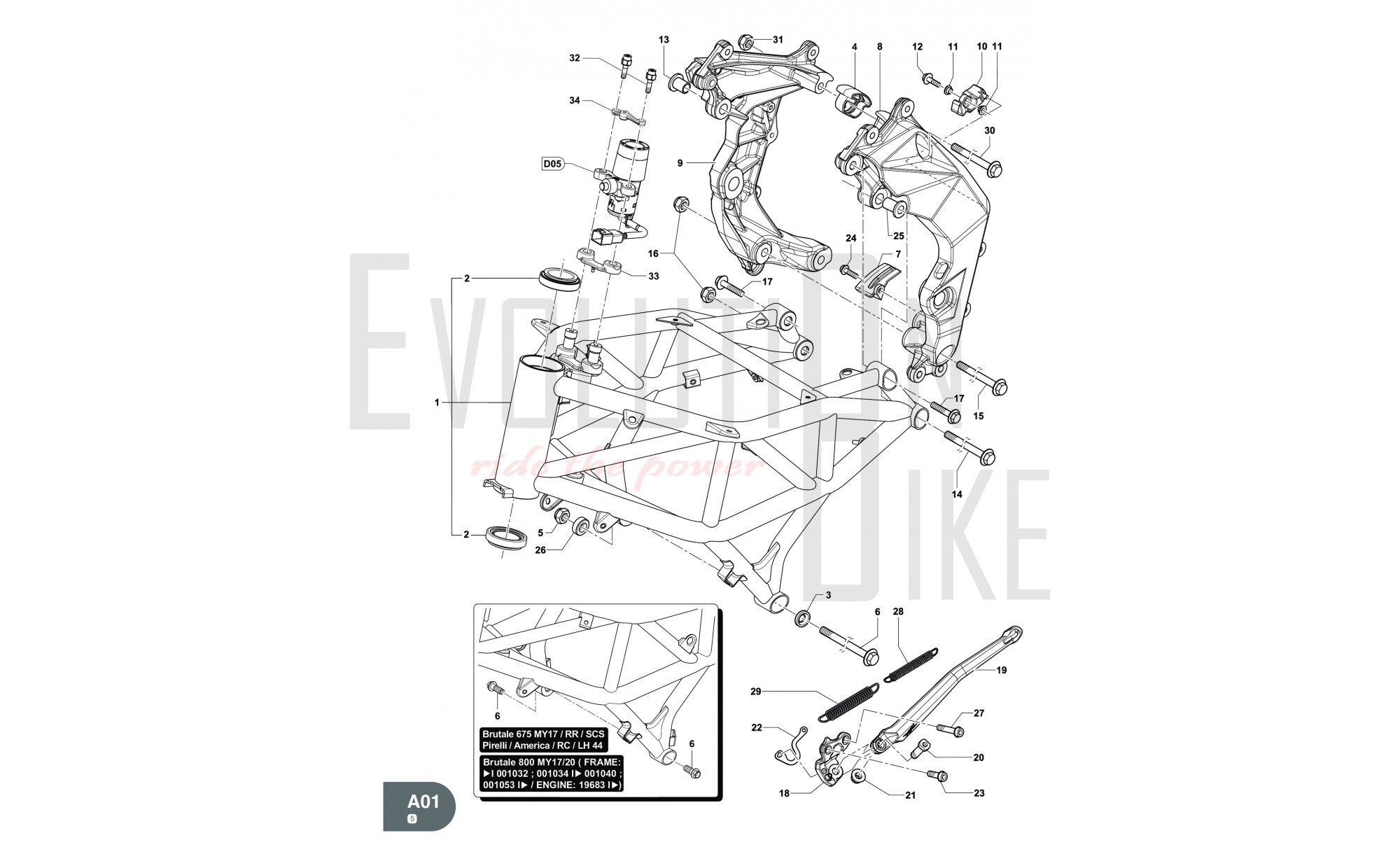 1 SPMV8A00C1542 TELAIO FINITO B3/16 CON CUSCINETTI MY18 800 RED/SILVER Available on backorder