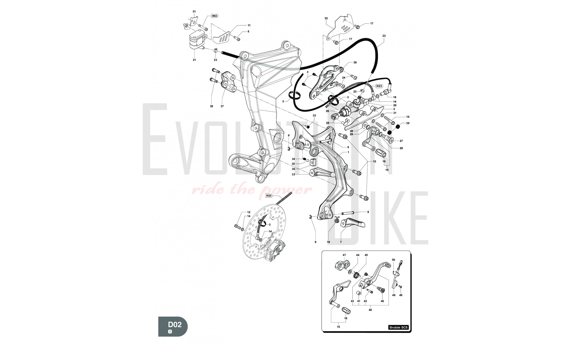 D02 - RIGHT FOOTRESTS - BRAKE PEDAL
