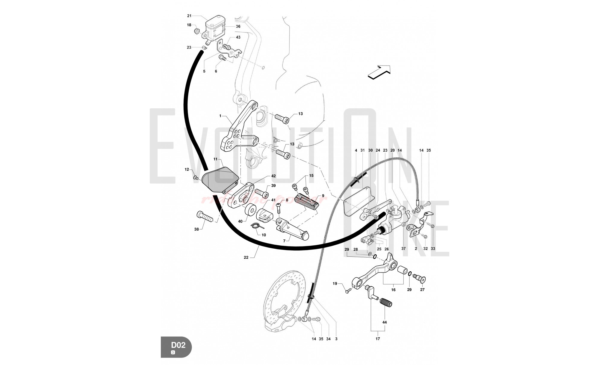 D02 - Footrest front right-Pedal brake