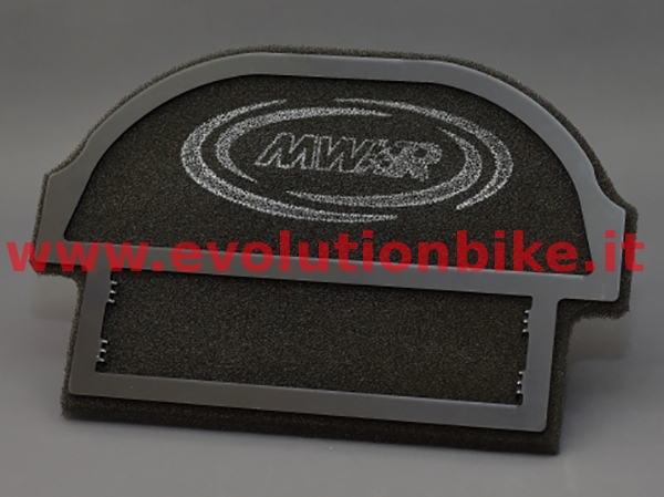 MWR MV Agusta 3 cylinders performance filters are specially developed to increase performance and protection for road and track use, due to a bigger filter surface and a very special design. Clean and pre-oil the filter at least once a year. Only clean & pre-oil the filter with MWR airfilteroil and cleaner. Caution: Due to the more open structure of the racefilter cleaning & pre-oiling after every two race weekends.