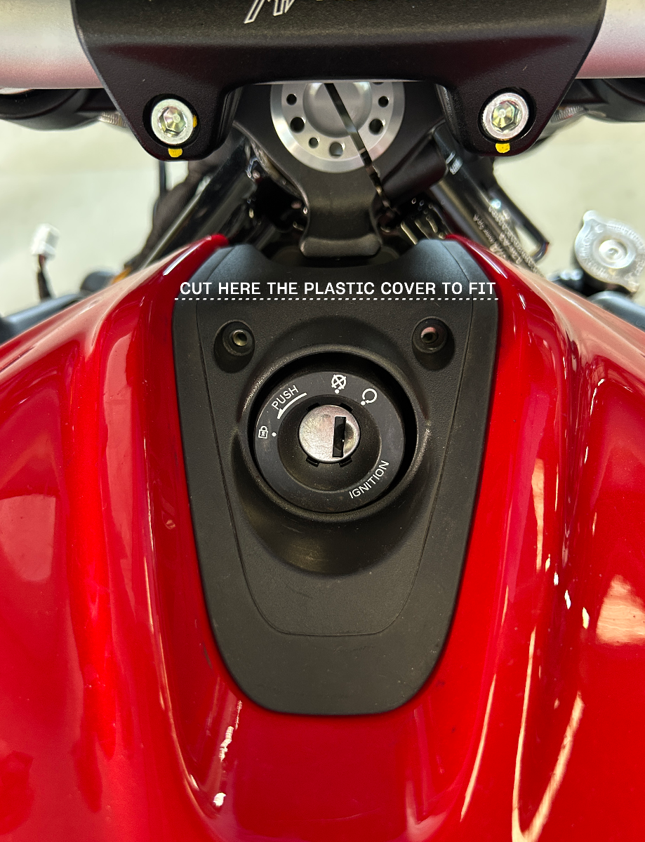 BEWARE: For a proper installation the keylock plastic cover needs to be cutted (see the image)