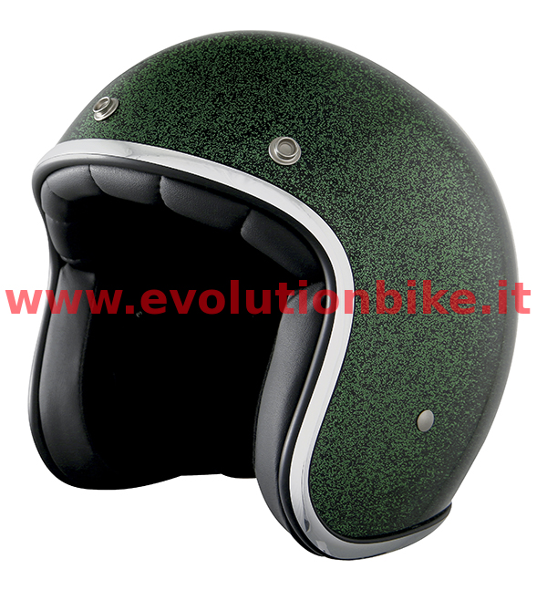 ECE 2205 approved. Vintage helmet. Metal trim finish. Leather finish for inner and hypoallergenic fabric. Possibility to attach clear lens.