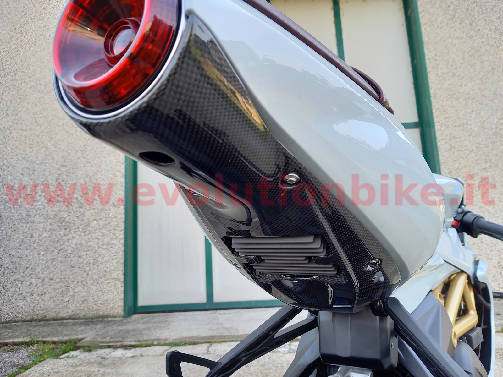 Carbon fiber underseat tail tray. Excellent quality material and 100% fully carbon fiber, produced in autoclave. Transparent brilliant paint.