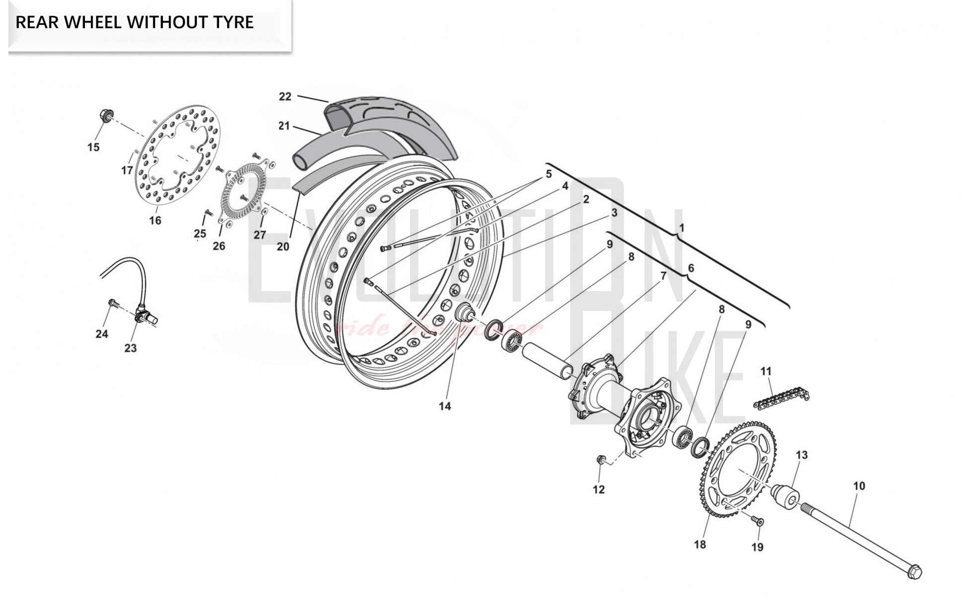 1 10000449 REAR WHEEL WITHOUT TYRE Available on backorder