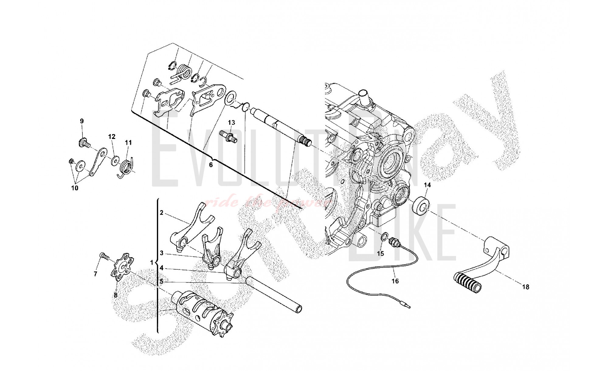 E11 - GEARSHIFT DRUM ASSY & GEARSHIFT AXLE ASSY
